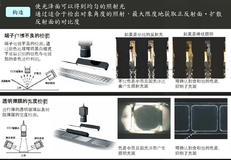 通過適合于檢出對象角度照射,最大限度地獲取正面反射面.擴散反射面的對比度。
